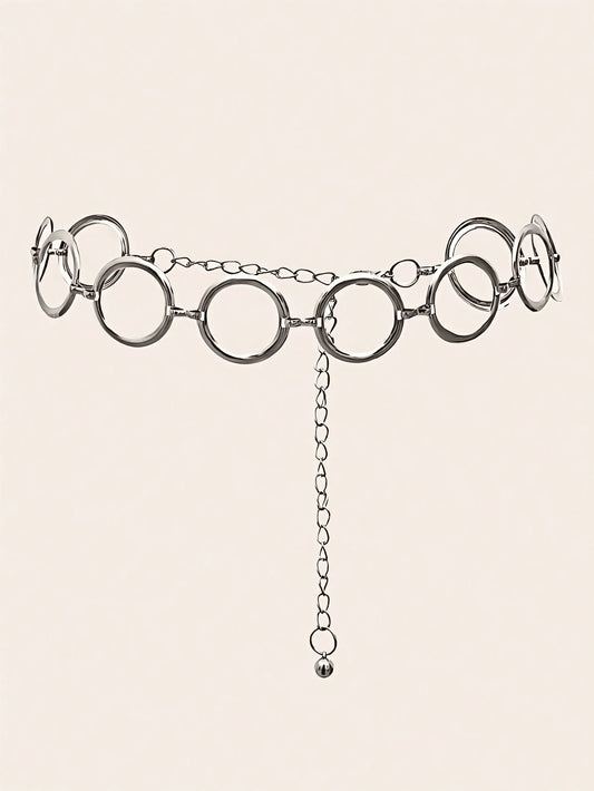 1Pc Women Metallic Silver Circle Waist Chain, Versatile Cinch Waist Vintage Belt, Fit Dresses, Coats, Jeans for Daily Wear & Occasions Summer, School Fall, Autumn, Halloween